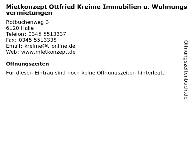 | Mietkonzept Ottfried Kreime Immobilien u. Wohnungsvermietungen anrufen | |