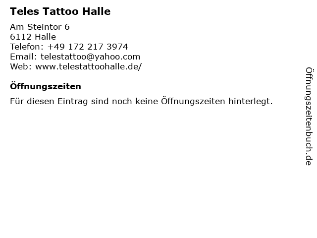 | Öffnungszeiten Teles Tattoo Halle in Halle anzeigen | |