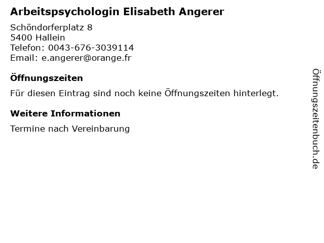 | Arbeitspsychologin Elisabeth Angerer anrufen | |