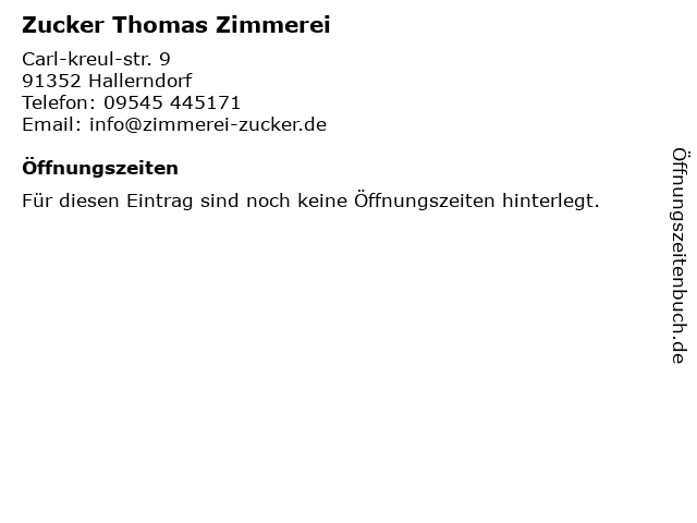 | Öffnungszeiten Zucker Thomas Zimmerei in Hallerndorf anzeigen | |