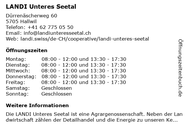 | Öffnungszeiten LANDI Unteres Seetal in Hallwil anzeigen | |