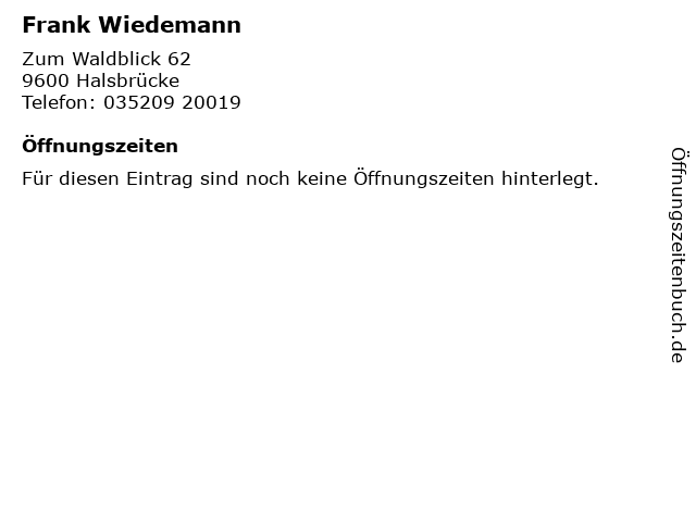 | Öffnungszeiten Frank Wiedemann in Halsbrücke anzeigen | |