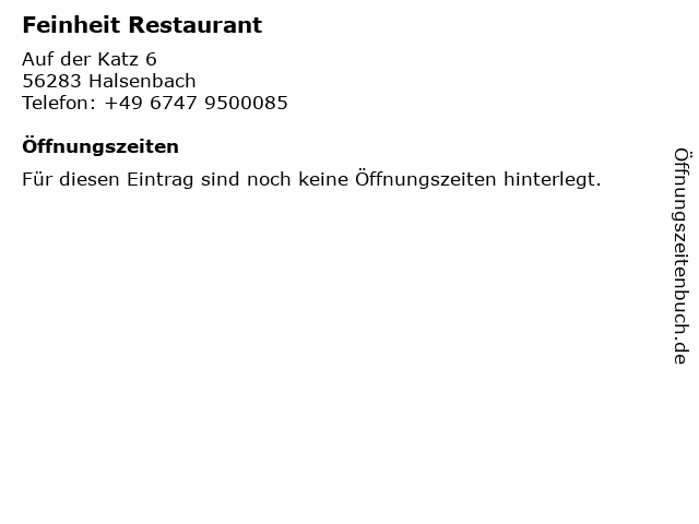 | Öffnungszeiten Feinheit Restaurant in Halsenbach anzeigen | |