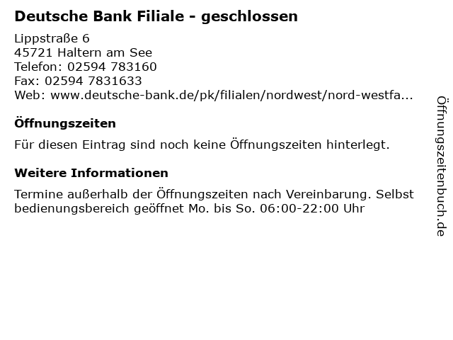 | Deutsche Bank Filiale - geschlossen anrufen | |