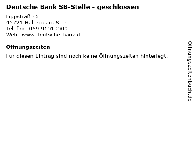 | Deutsche Bank SB-Stelle - geschlossen anrufen | |