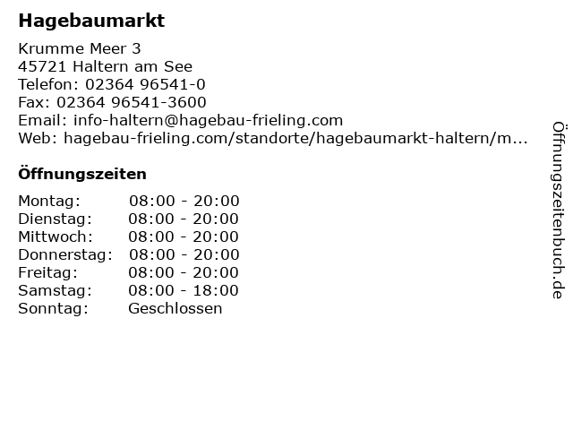 | Öffnungszeiten Hagebaumarkt in Haltern am See anzeigen | |