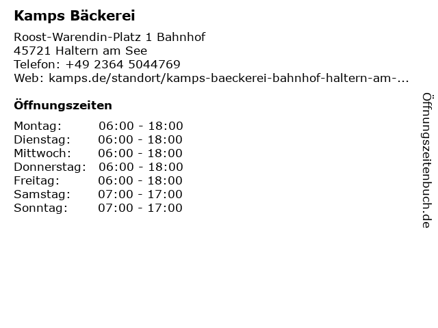 | Öffnungszeiten Kamps Bäckerei in Haltern am See anzeigen | |