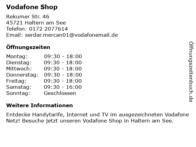| Öffnungszeiten Vodafone Shop in Haltern am See anzeigen | |