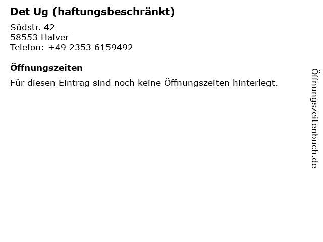 | Telefonnummer Det Ug (haftungsbeschränkt) in Halver (+49 2353 6159492) anrufen | |