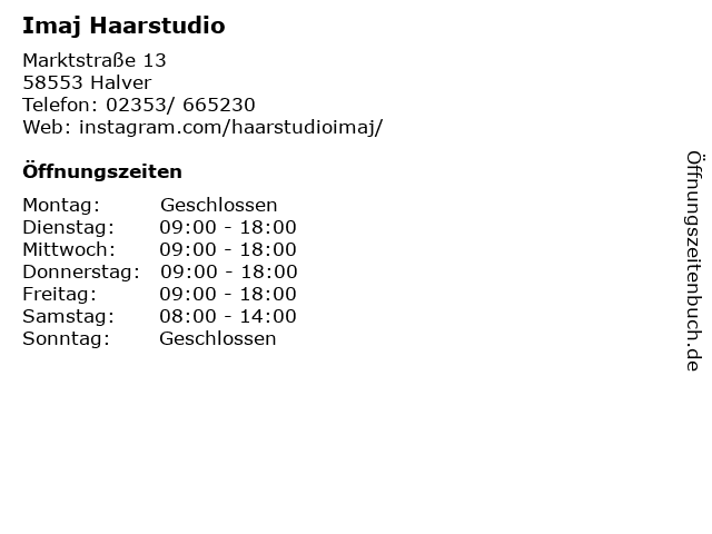| Öffnungszeiten Imaj Haarstudio in Halver anzeigen | |