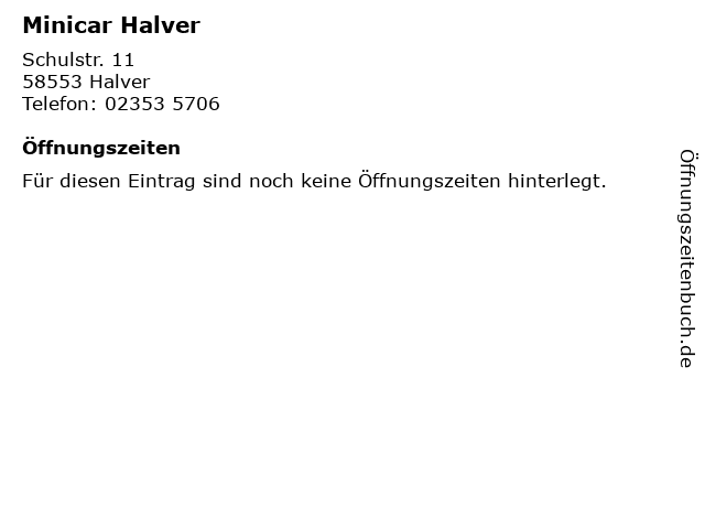 | Öffnungszeiten Minicar Halver in Halver anzeigen | |