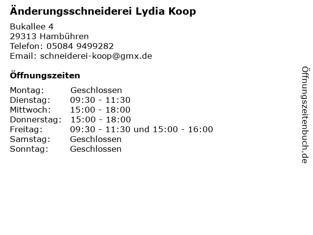 Änderungsschneiderei Lydia Koop in Hambühren: Telefonnummer, Öffnungszeiten und Adresse