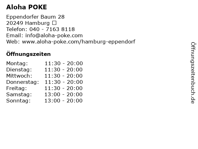 | Öffnungszeiten Aloha POKE in Hamburg anzeigen | |