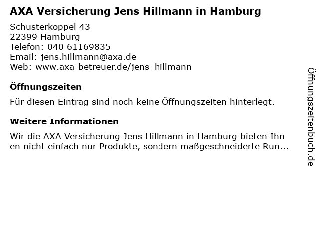 | AXA Versicherung Jens Hillmann in Hamburg anrufen | |