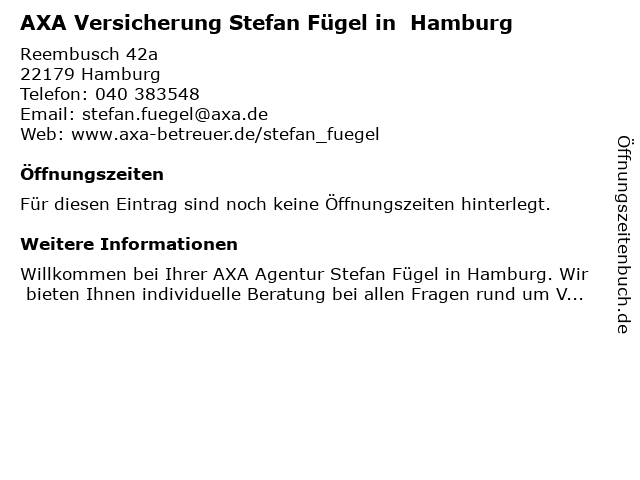 | AXA Versicherung Stefan Fügel in Hamburg anrufen | |