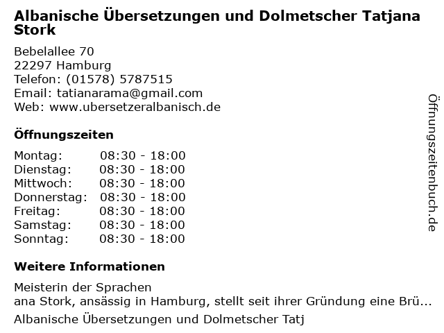 Branchen & Suchbegriffe zu Albanische Übersetzungen und Dolmetscher Tatjana Stork:albanisch-übersetzungen, albanische, beglaubigte übersetzungen, deutsch-albanische übersetzungen, dolmetscher, stork, tatjana, vereidigte dolmetscherin, übersetzungen |