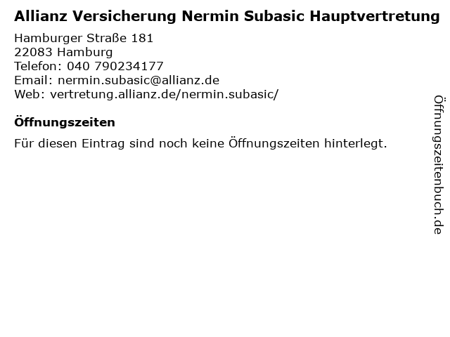 | Allianz Versicherung Nermin Subasic Hauptvertretung anrufen | |