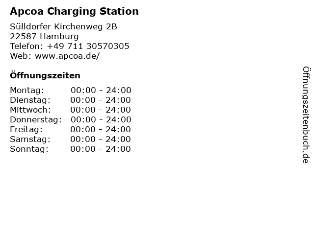 Apcoa Charging Station in Hamburg | Telefonnummer, Öffnungszeiten und Adresse