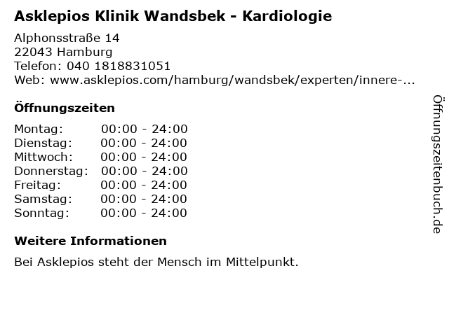Branchen & Suchbegriffe zu Asklepios Klinik Wandsbek - Kardiologie:asklepios, kardiologie, klinik, wandsbek |
