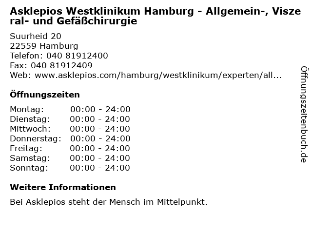 Branchen & Suchbegriffe zu Asklepios Westklinikum Hamburg - Allgemein-, Viszeral- und Gefäßchirurgie:allgemein, asklepios, gefäßchirurgie, viszeral, westklinikum |