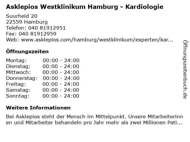 Branchen & Suchbegriffe zu Asklepios Westklinikum Hamburg - Kardiologie:asklepios, kardiologie, westklinikum |