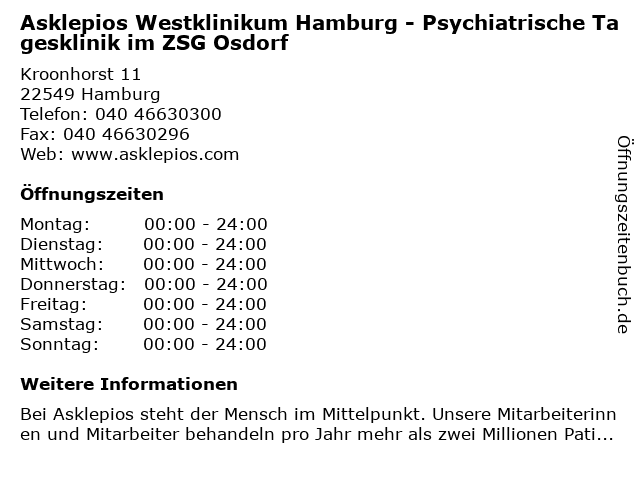 Branchen & Suchbegriffe zu Asklepios Westklinikum Hamburg - Psychiatrische Tagesklinik im ZSG Osdorf:asklepios, osdorf, psychiatrische, tagesklinik, westklinikum, zsg |
