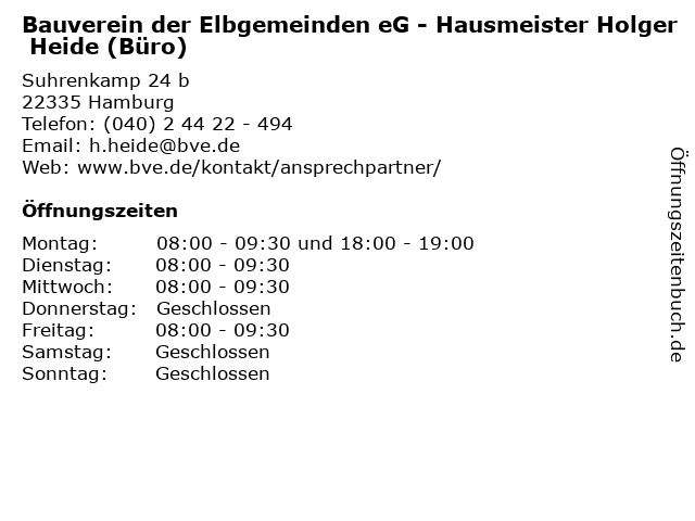 Branchen & Suchbegriffe zu Bauverein der Elbgemeinden eG - Hausmeister Holger Heide (Büro):bauverein, bve, büro, eg, elbgemeinden, hausmeister, heide, holger |