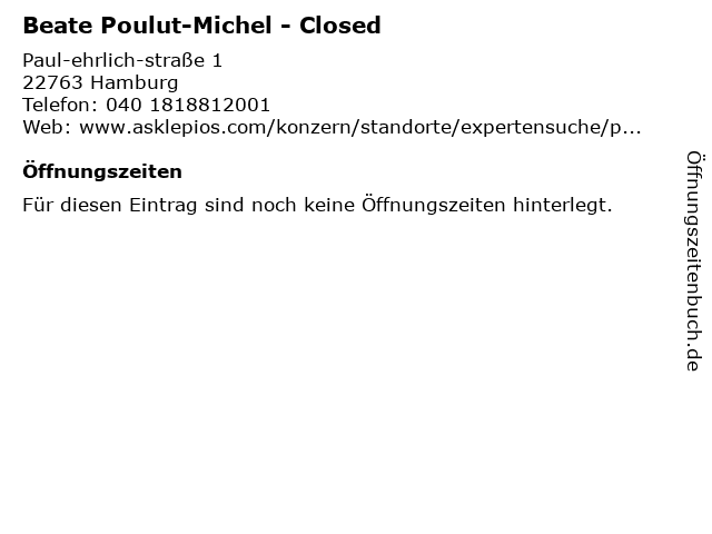 | Öffnungszeiten Beate Poulut-Michel - Closed in Hamburg anzeigen | |