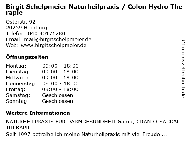 2 6 Ganzheitliche Naturheilpraxis Cornelia Kopp (Entfernung: 0,96 km) Eimsbütteler Chaussee 37, 20259 Hamburg |