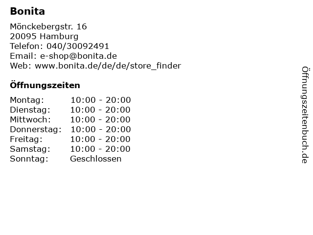 Öffnungszeiten Bonita in Hamburg anzeigen | |
