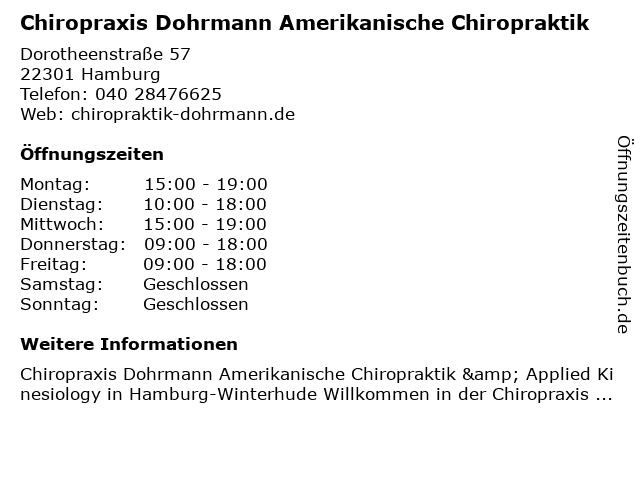 Branchen & Suchbegriffe zu Chiropraxis Dohrmann Amerikanische Chiropraktik:alternative heilmethoden, amerikanische, chiropraktik, chiropraxis, dohrmann |