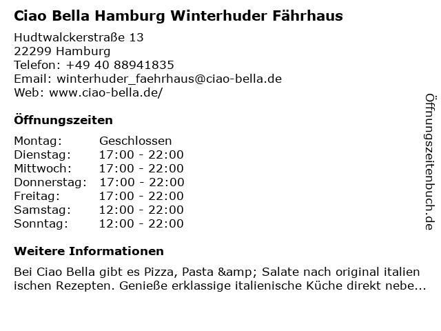 Branchen & Suchbegriffe zu Ciao Bella Hamburg Winterhuder Fährhaus:abendessen, bella, ciao, ciaobella, eventlocation, fährhaus, italian restaurant, italienische küche, komödie, pasta, pizza, restaurant, salate, take away, terrasse, theater, veranstaltungen, winterhuder |