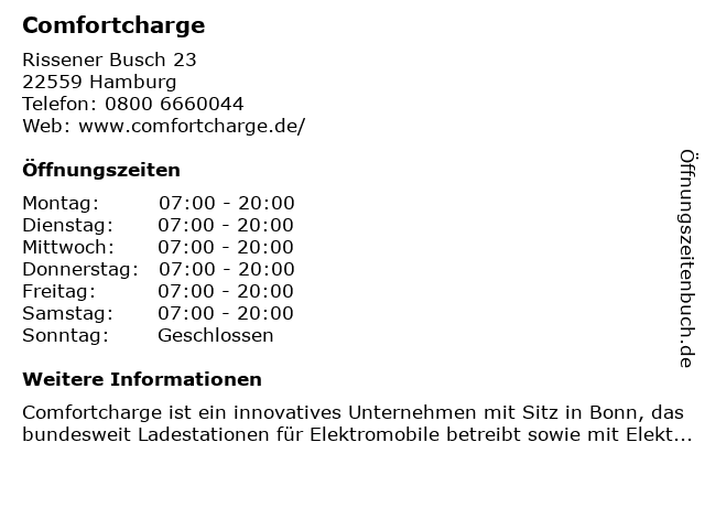 | Öffnungszeiten Comfortcharge in Hamburg anzeigen | |