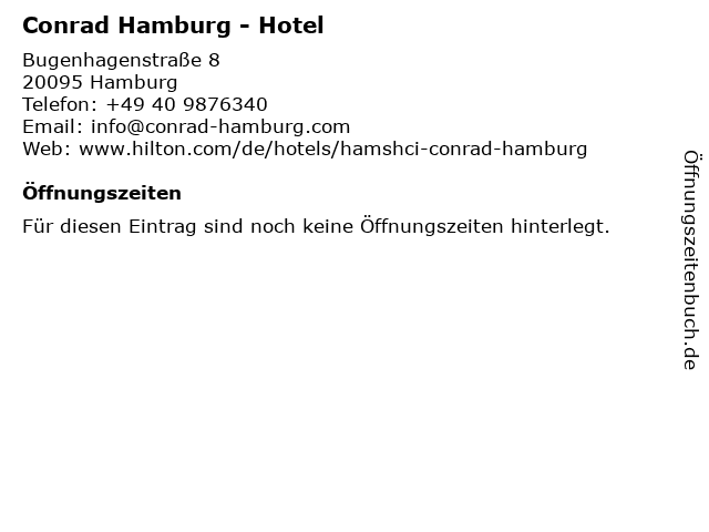 | Öffnungszeiten Conrad Hamburg - Hotel in Hamburg anzeigen | |