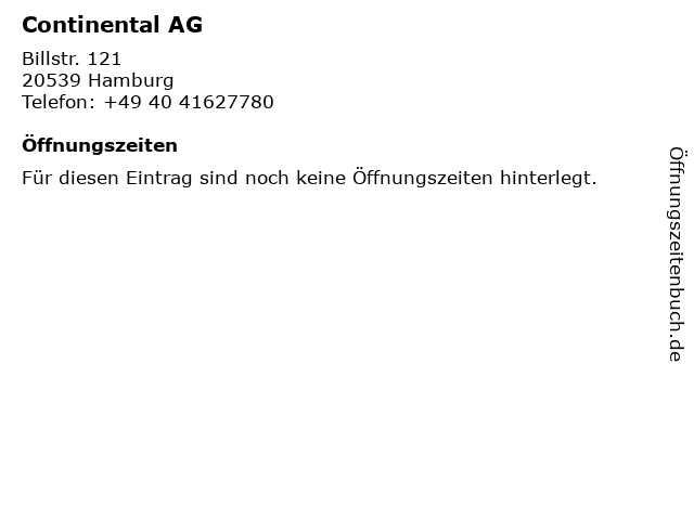 | Öffnungszeiten Continental AG in Hamburg anzeigen | |
