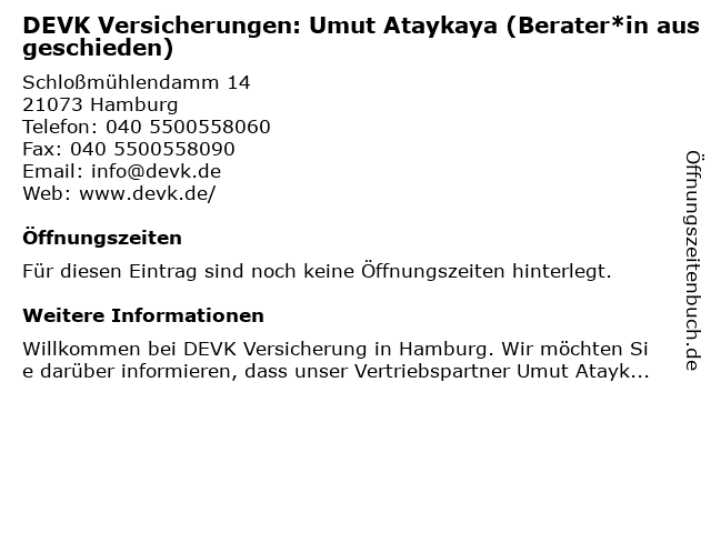 | DEVK Versicherungen: Umut Ataykaya (Berater*in ausgeschieden) anrufen | |