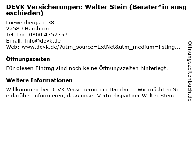 | DEVK Versicherungen: Walter Stein (Berater*in ausgeschieden) anrufen | |