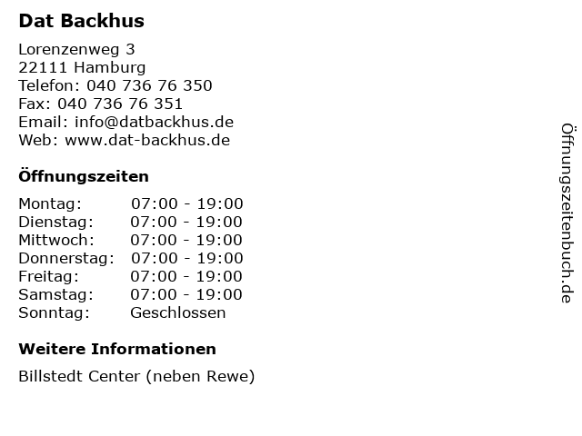 Öffnungszeiten Dat Backhus in Hamburg anzeigen | |