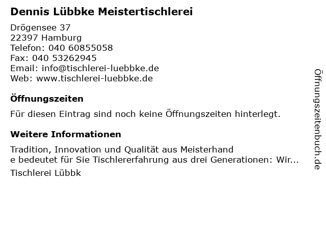 | Dennis Lübbke Meistertischlerei anrufen | |