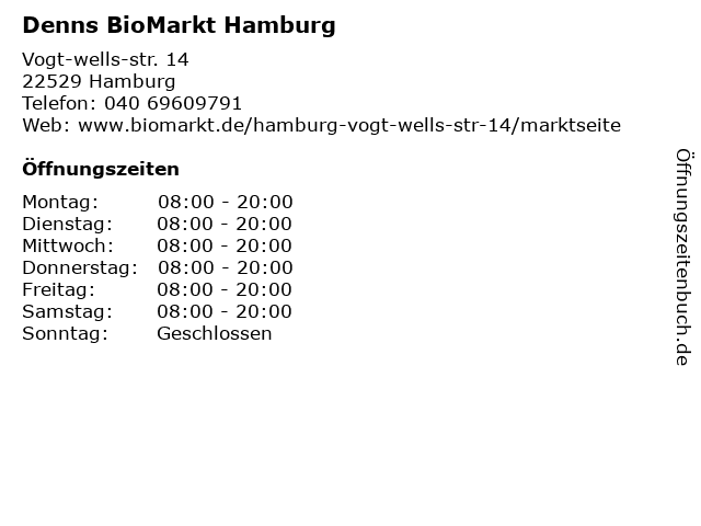 | Öffnungszeiten Denns BioMarkt Hamburg in Hamburg anzeigen | |