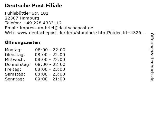 Deutsche Post Filiale in Hamburg | Telefonnummer, Öffnungszeiten und Adresse