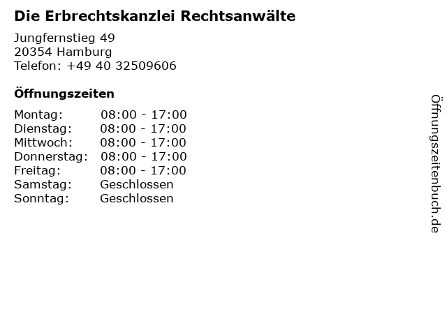 3 Alpers & Stenger Partnerschaft Wirtschaftsprüfer Steuerberater Rechtsanwälte (Entfernung: 0,03 km) Colonnaden 5, 20354 Hamburg 6 Behrens & Partner, Rechtsanwälte und Fachanwälte für Arbeitsrecht (Entfernung: 0,05 km) Jungfernstieg 41, 20354 Hamburg |