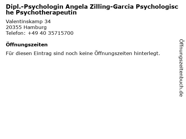 | Dipl.-Psychologin Angela Zilling-Garcia Psychologische Psychotherapeutin anrufen | |