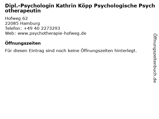 | Dipl.-Psychologin Kathrin Köpp Psychologische Psychotherapeutin anrufen | |