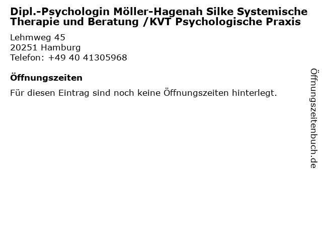 | Dipl.-Psychologin Möller-Hagenah Silke Systemische Therapie und Beratung /KVT Psychologische Praxis anrufen | |