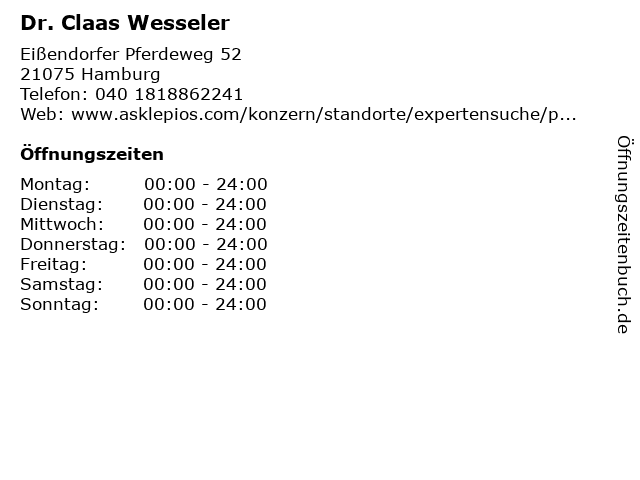 | Öffnungszeiten Dr. Claas Wesseler in Hamburg anzeigen | |