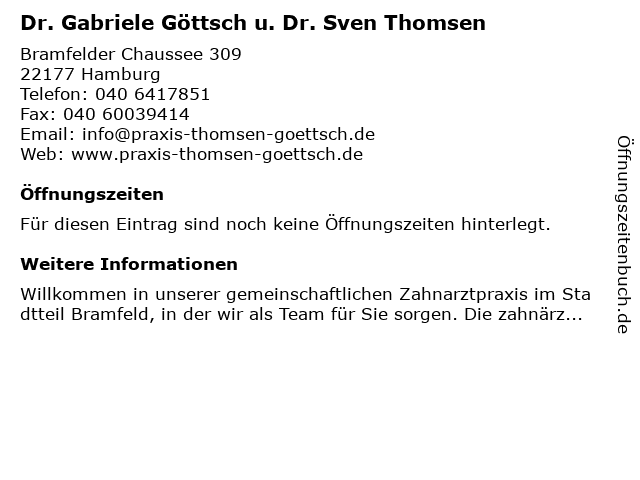 | Dr. Gabriele Göttsch u. Dr. Sven Thomsen anrufen | |