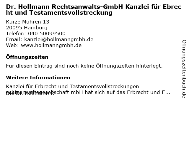 | Dr. Hollmann Rechtsanwalts-GmbH Kanzlei für Ebrecht und Testamentsvollstreckung anrufen | |