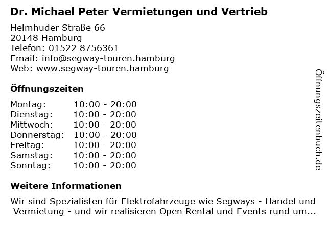 | Montag | 10:00-20:00 |