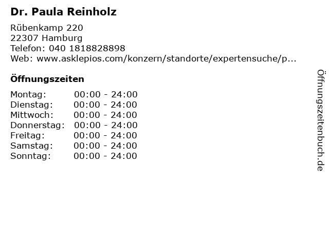 Öffnungszeiten Dr. Paula Reinholz in Hamburg anzeigen | |